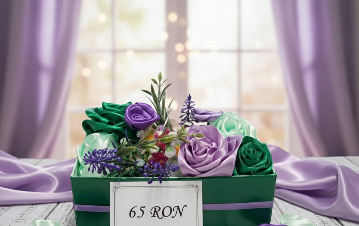 Buchet elegant pentru mireasa, realizat din flori artificiale premium de cea mai inalta calitate. Florile artificiale avansate sunt practic indistinguishable de cele naturale si au avantajul ca raman proaspete toata ziua si pot fi pastrate ca amintire.