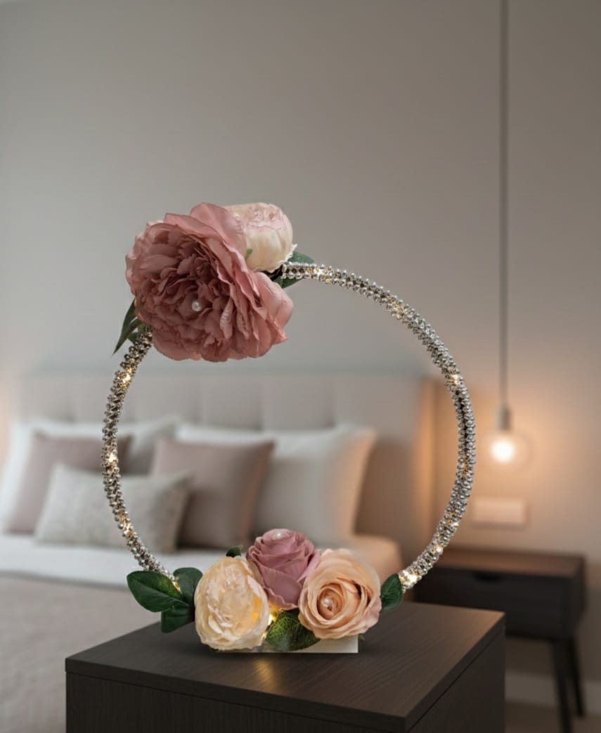 Cerc decorativ in stil bohemian, realizat din ratan natural si impodobit cu flori uscate, pene si rafina delicata. O piesa artistica ce aduce caldura si personalitate oricarui spatiu.