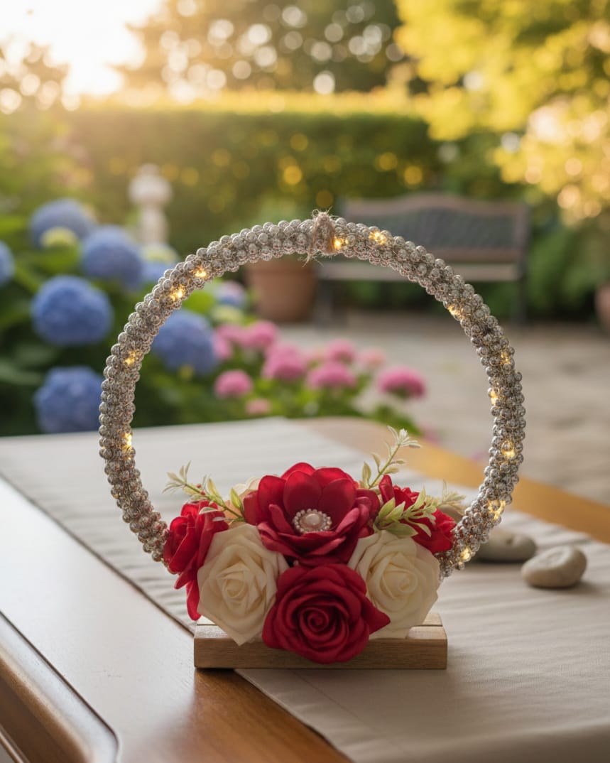 Cosulet vintage din rachita cu aranjament de flori uscate si ierburi aromatice. O piesa decor cu caracter, perfecta pentru un interior rustic sau vintage-chic.